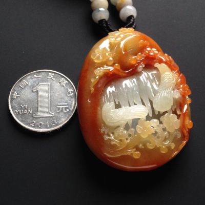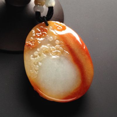 巧雕红翡喜上眉梢翡翠吊坠 尺寸53-40-13毫米