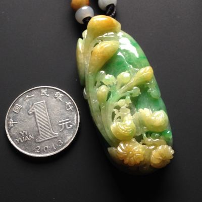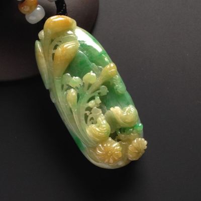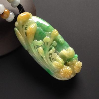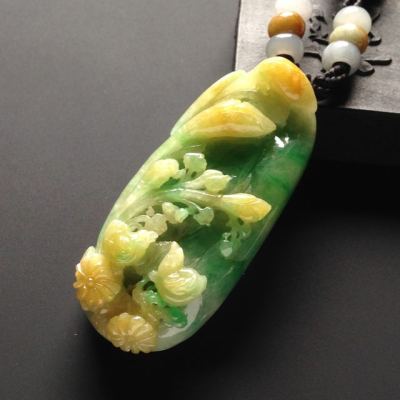 巧雕黄加绿花鸟翡翠吊坠 尺寸56-26-13毫米