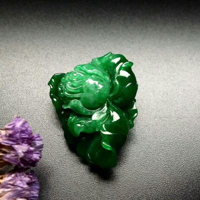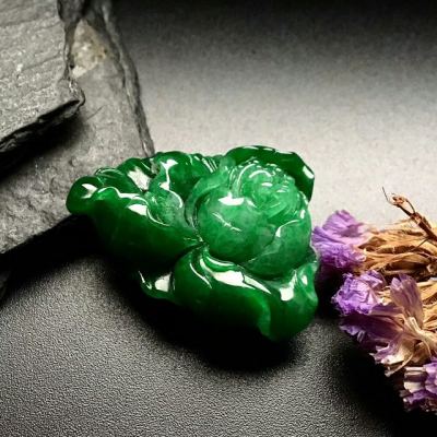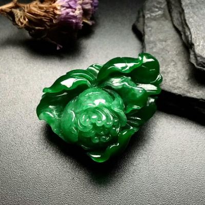 满色花开富贵翡翠吊坠 尺寸: 25-32-11mm