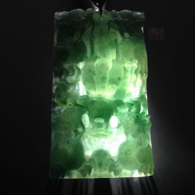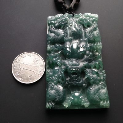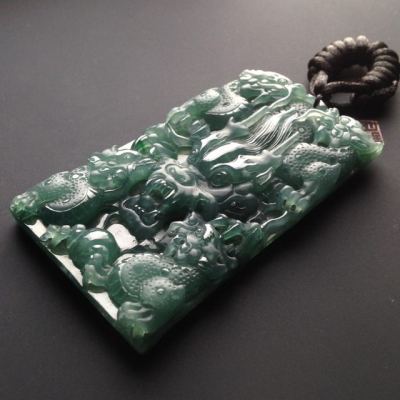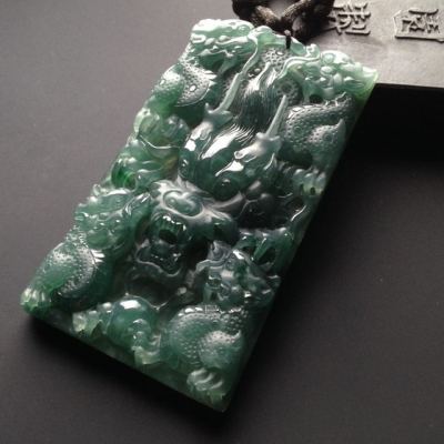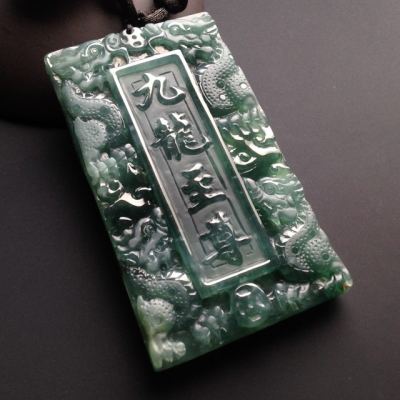 糯冰种蓝水 缅甸天然龙牌翡翠挂件 尺寸72-42-10毫米