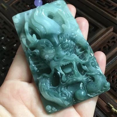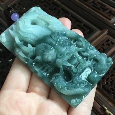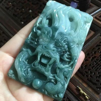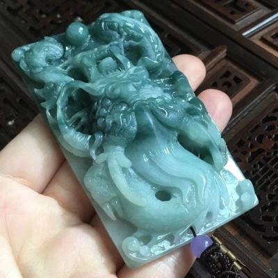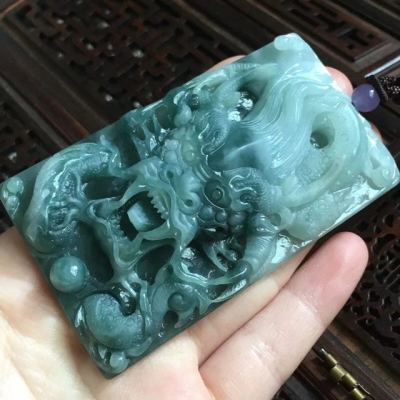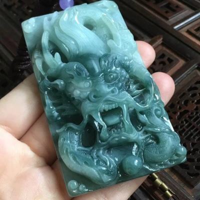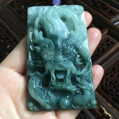 缅甸天然A货翡翠大件厚庄龙牌翡翠吊坠 尺寸76.5*44*13.6