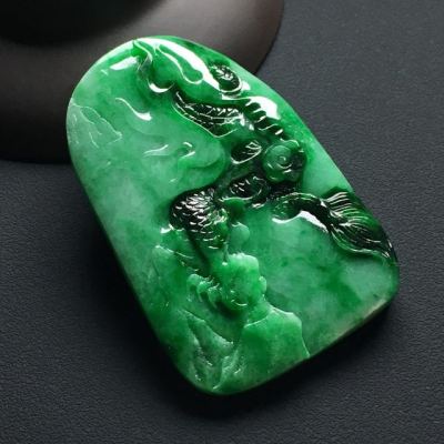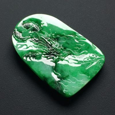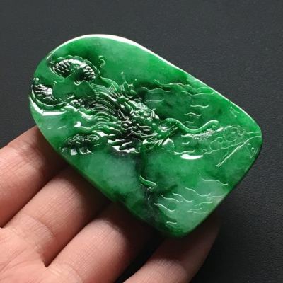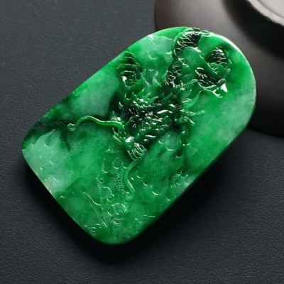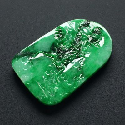 巧雕满色 龙行天下翡翠吊坠 尺寸:61-40-6.4毫米