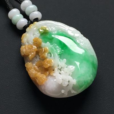 巧雕黄加绿喜上眉梢翡翠吊坠 尺寸:51-39-15.7毫米