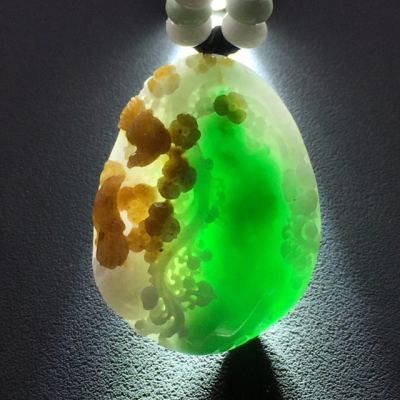 透明的A货翡翠,出现的莹光,以白色偏黄味