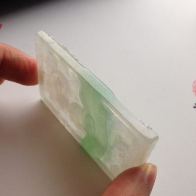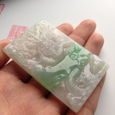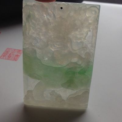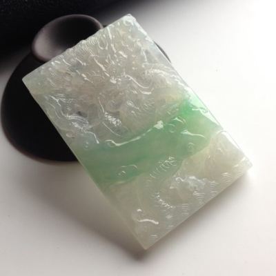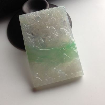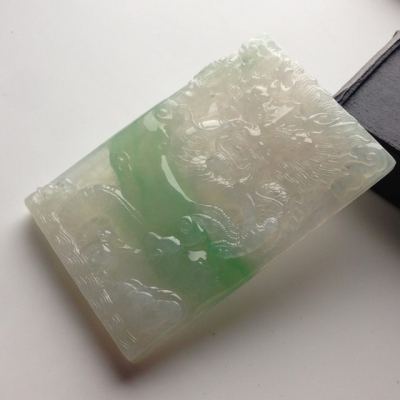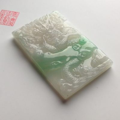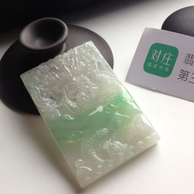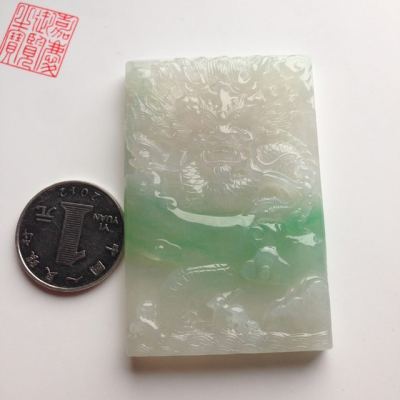 糯冰种带色龙牌翡翠挂件尺寸65-42-8毫米