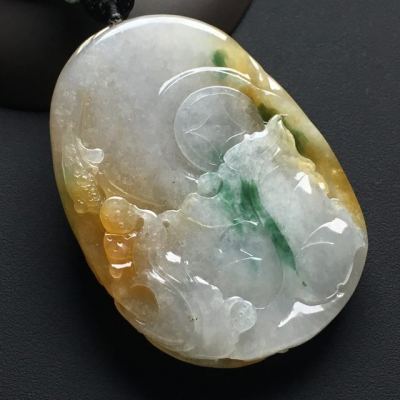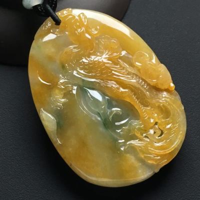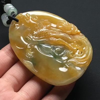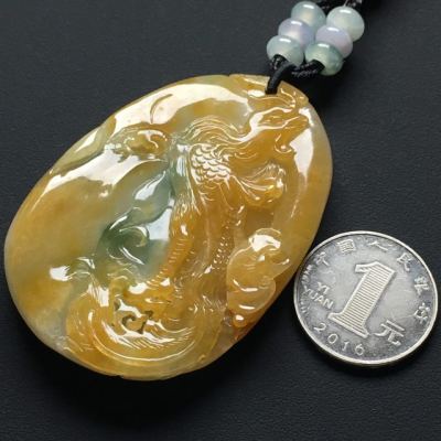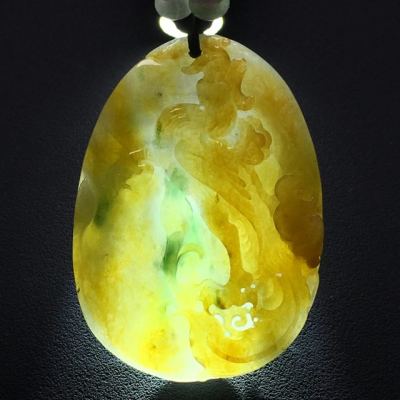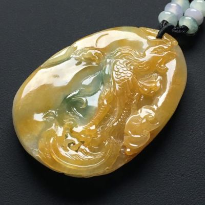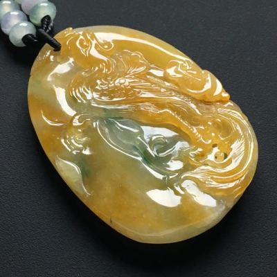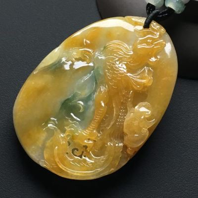 巧雕黄翡丹凤朝阳吊坠 尺寸:65-46-10毫米