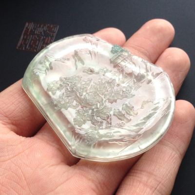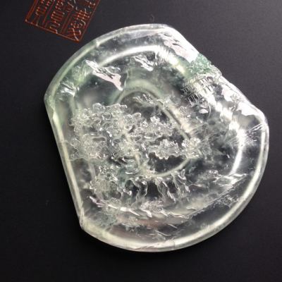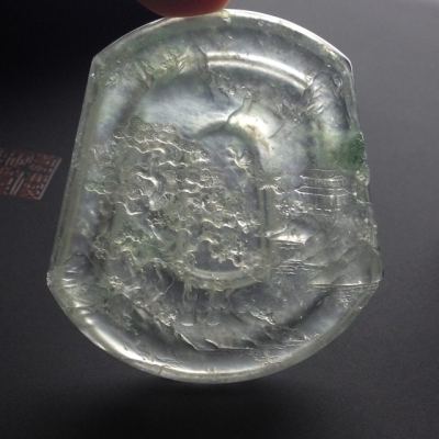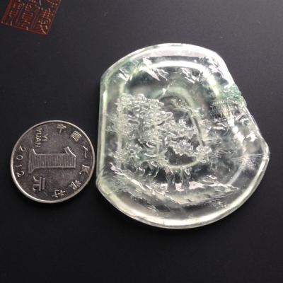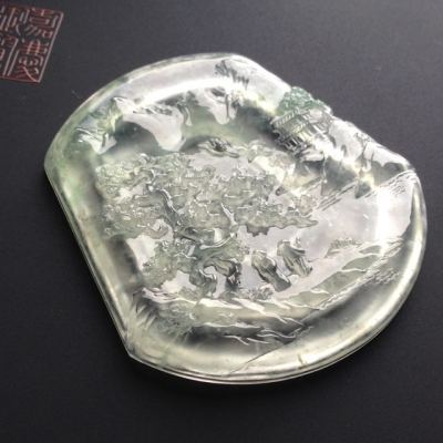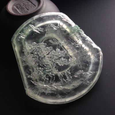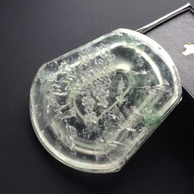 高冰种荧光松下会友翡翠吊坠 尺寸56-51-6毫米