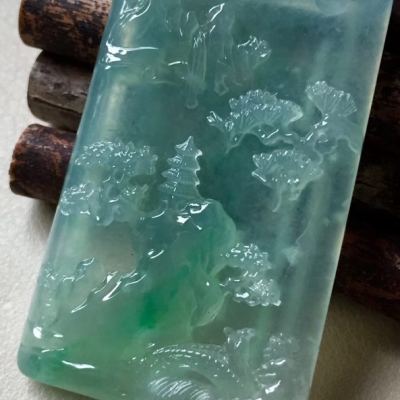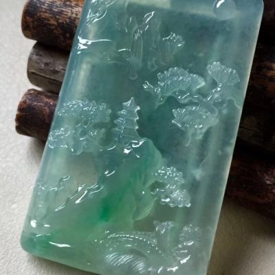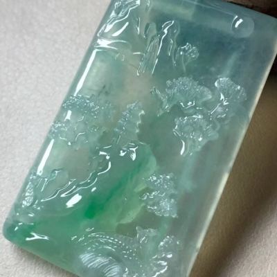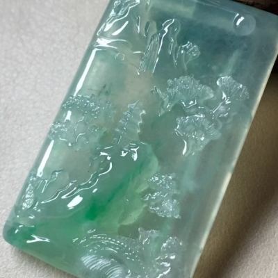 冰飘阳绿山水翡翠吊坠 尺寸49.6*32*6.3