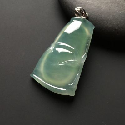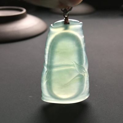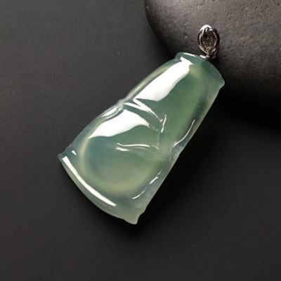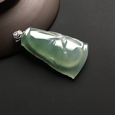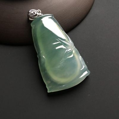 冰种晴绿 竹节翡翠吊坠 尺寸41-27-7毫米