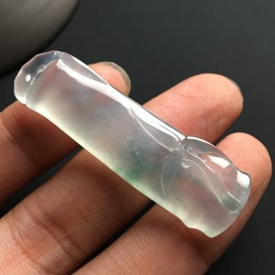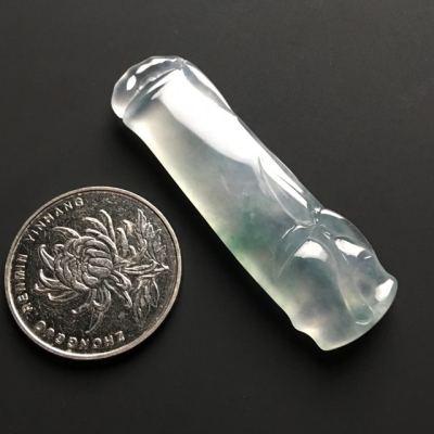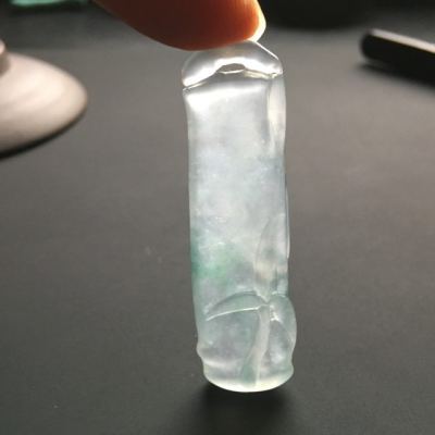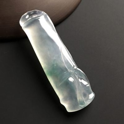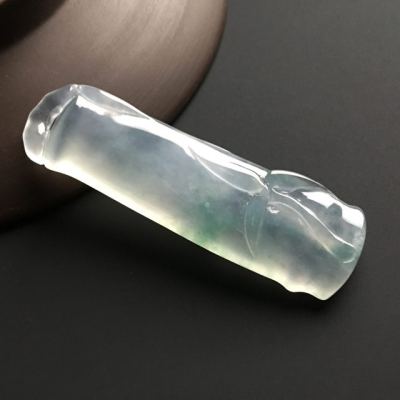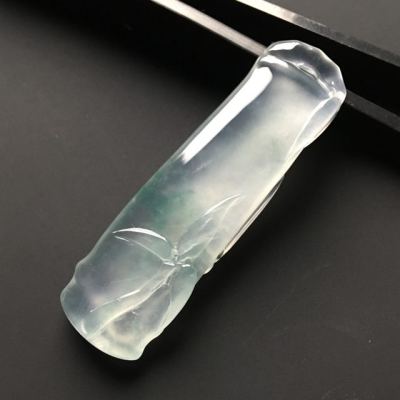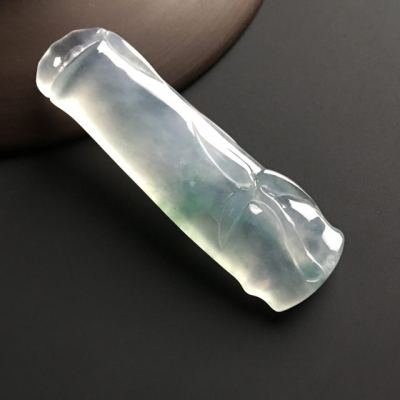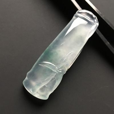 冰种飘花 竹报平安翡翠吊坠 尺寸52-16-6毫米