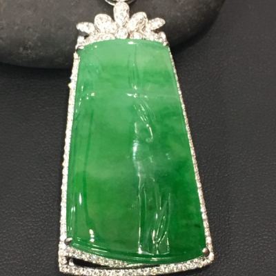 老种阳绿 节节高翡翠吊坠 尺寸:35.3-21.4-8.7