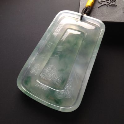 冰种飘花悠然自得翡翠挂件 尺寸60-40-7毫米