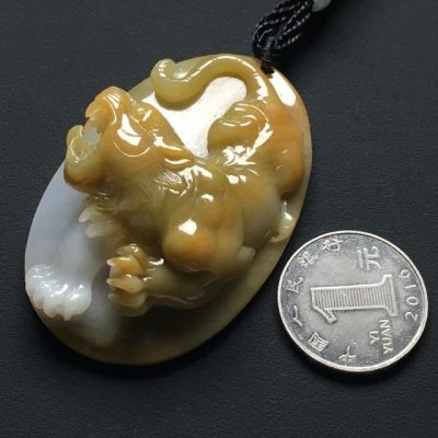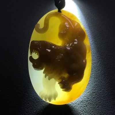 巧雕黄翡虎牌吊坠 尺寸:62-40-18毫米