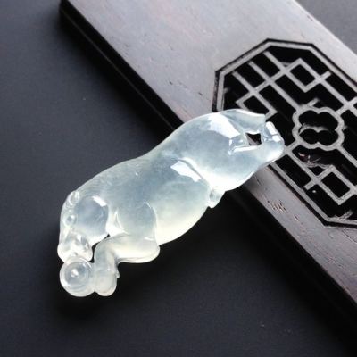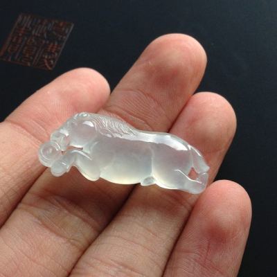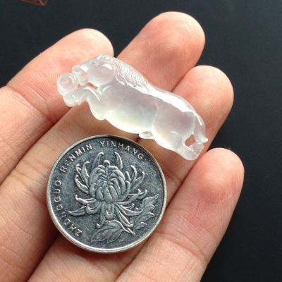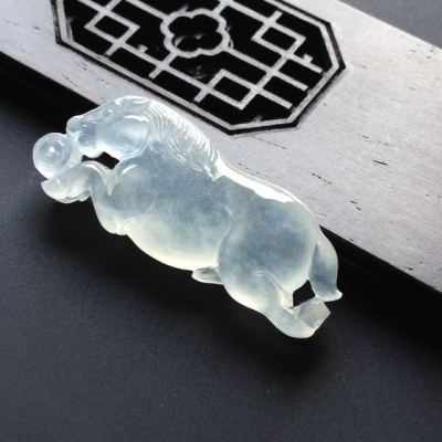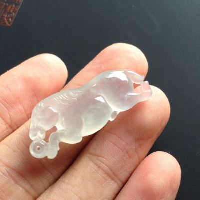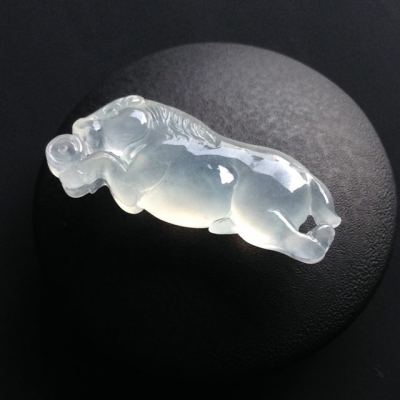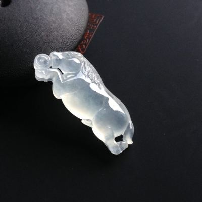 冰种荧光生肖马翡翠挂件 尺寸34-13-6毫米
