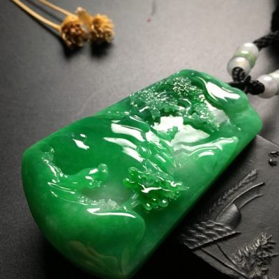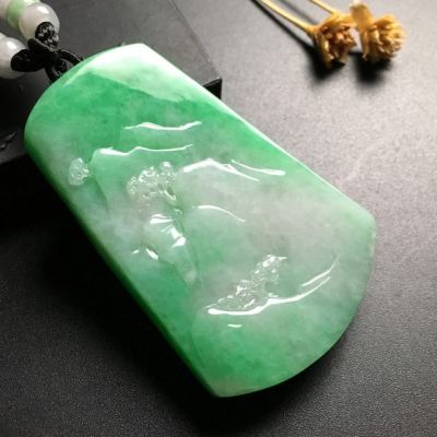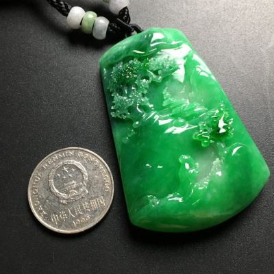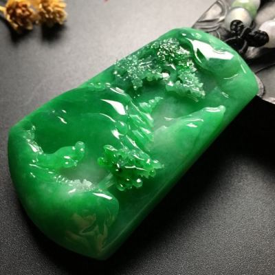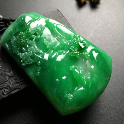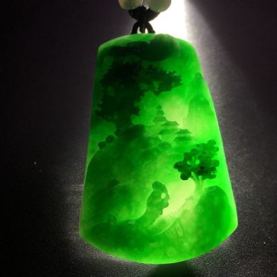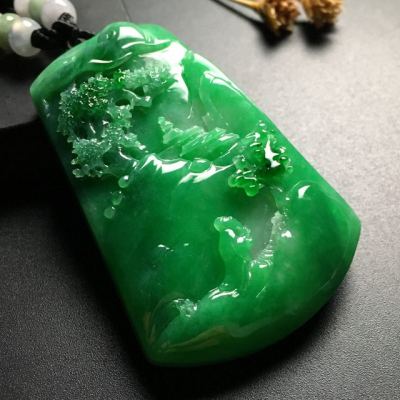 阳绿锦绣山川翡翠吊坠 尺寸62-40-11毫米
