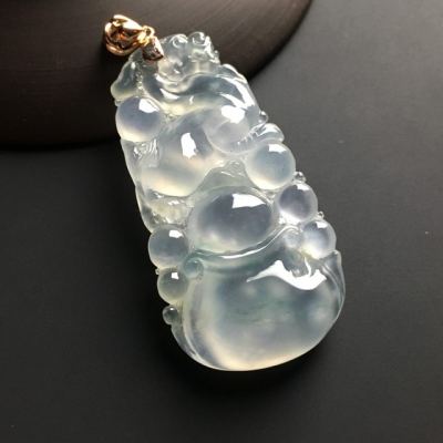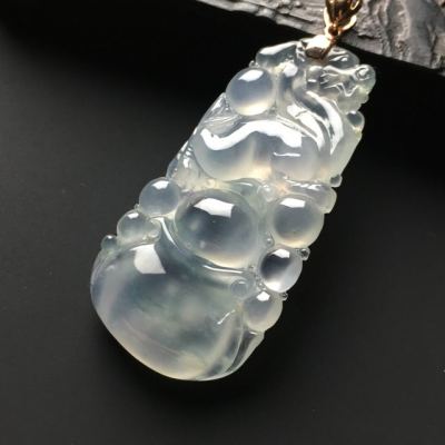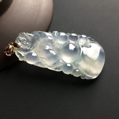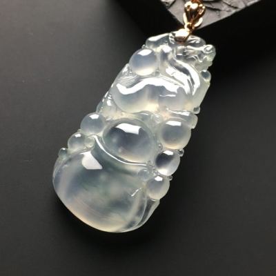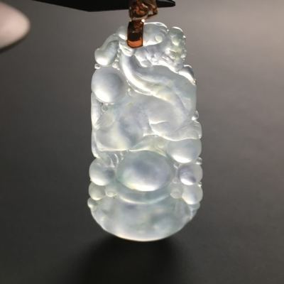 冰种飘花麒麟麒麟吊坠 尺寸48-23-7.5毫米