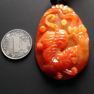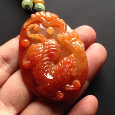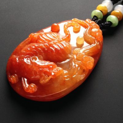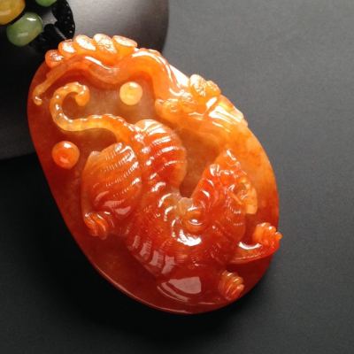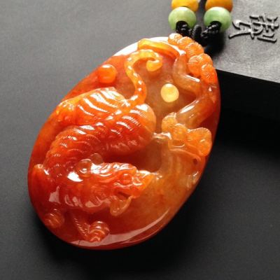 巧雕红翡翡翠挂件 虎虎生威翡翠挂件 尺寸58-41-11毫米