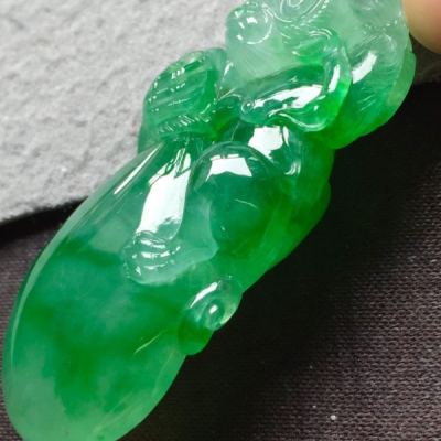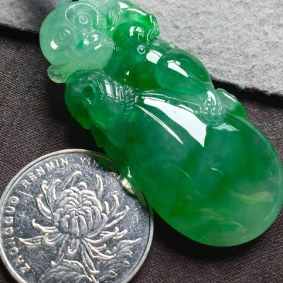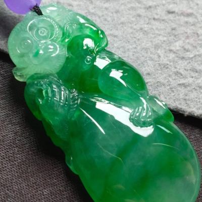 冰阳绿灵猴献寿翡翠吊坠 尺寸49*22.5*11.5