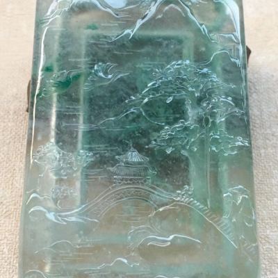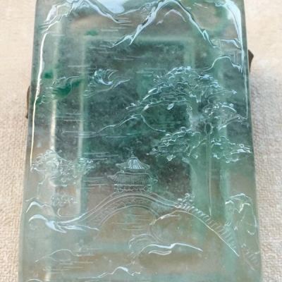 老坑料高冰种满底色《山水牌》翡翠挂件