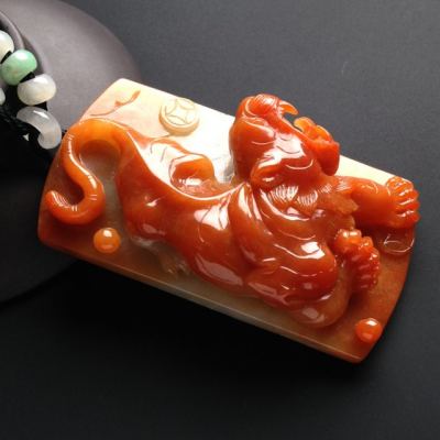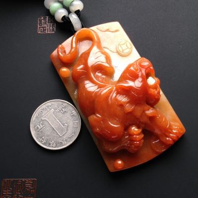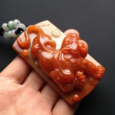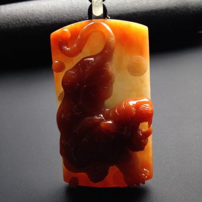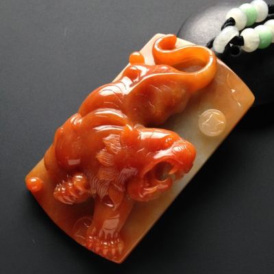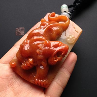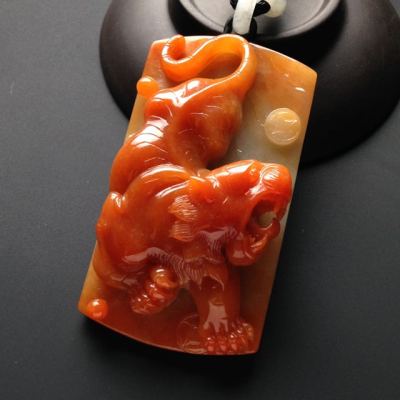 巧雕红翡 虎虎生威翡翠挂件 尺寸73-40-20毫米