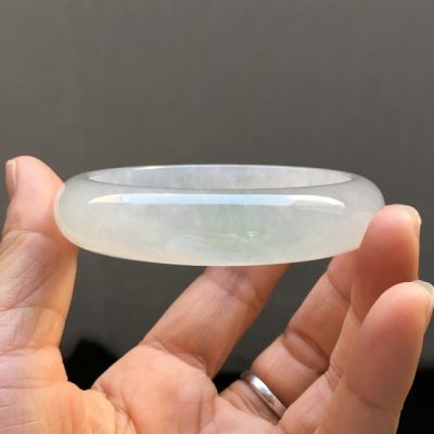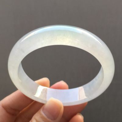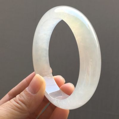 除了雕刻的雕花手镯外,素面型的翡翠手