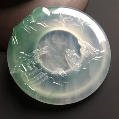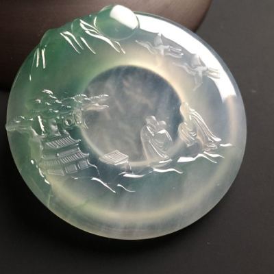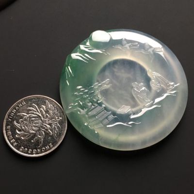 冰种飘绿松下会友翡翠吊坠 尺寸53-7毫米