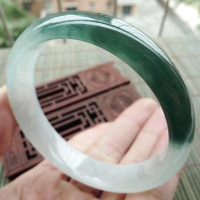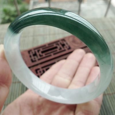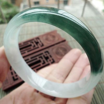 冰种满绿飘花翡翠手镯 A货翡翠手镯57mm