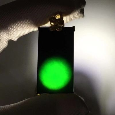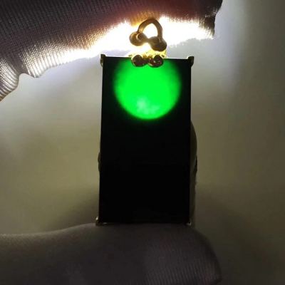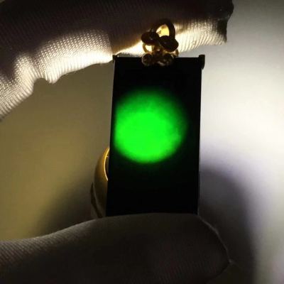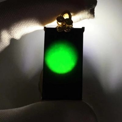 透明的A货翡翠,出现的莹光,以白色偏黄味