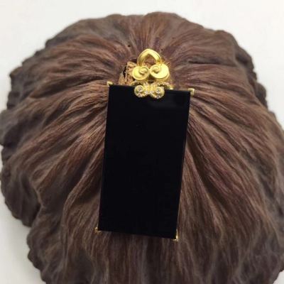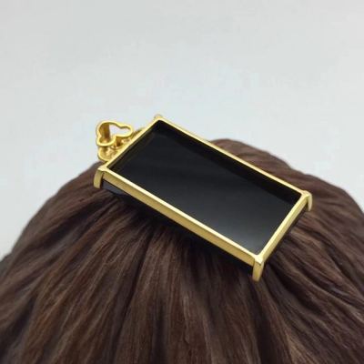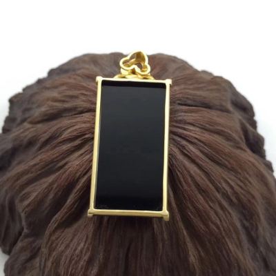 墨翠无事牌翡翠吊坠 18K黄金镶嵌 连金尺寸32.4-17.1-4mm