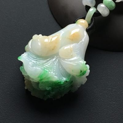 巧雕黄加绿财源滚滚翡翠吊坠 尺寸:49-37.5-17.5毫米