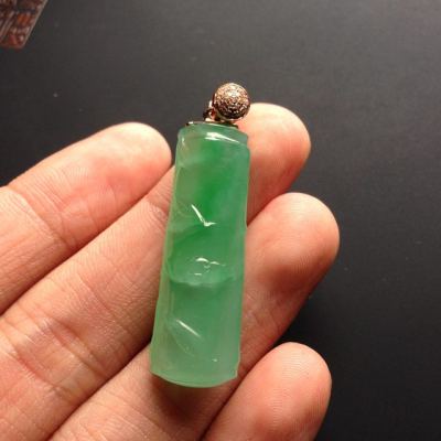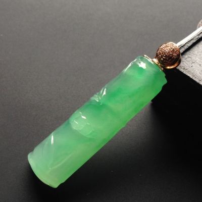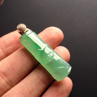冰种绿底 节节高翡翠吊坠 裸石35-11-6.5毫米