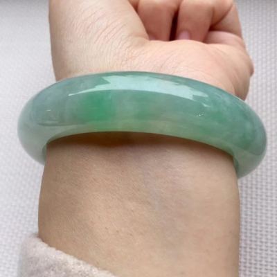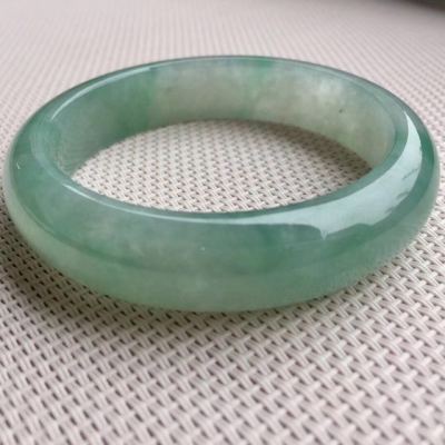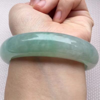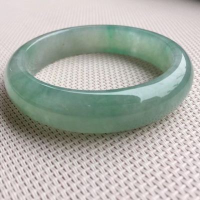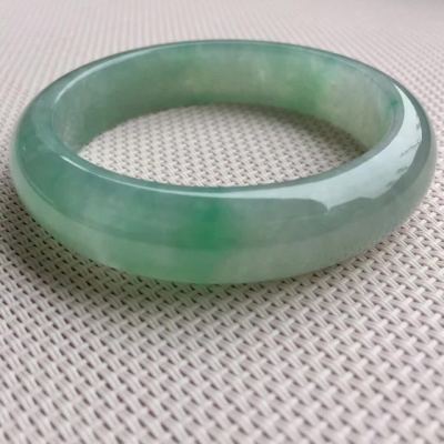 糯种淡绿底飘阳绿翡翠手镯 尺寸56.8-13.8-8.2