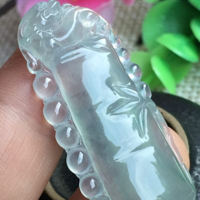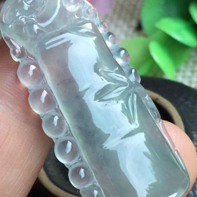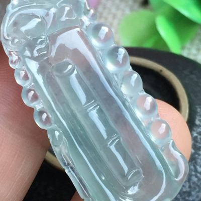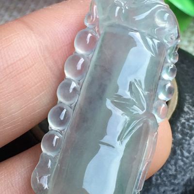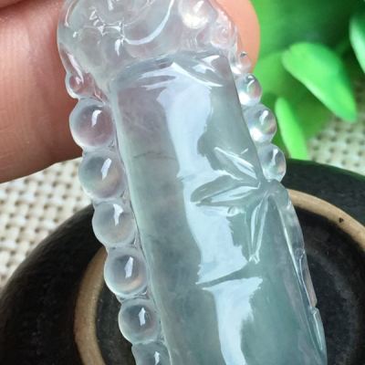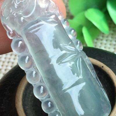 高冰飘翠 貔貅竹节步步高升翡翠吊坠 尺寸:42.3*19.1*6.8超