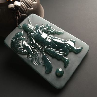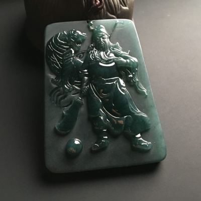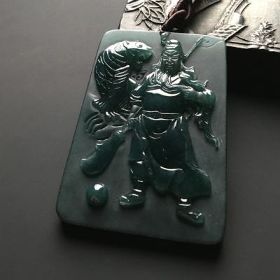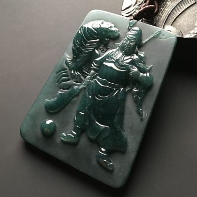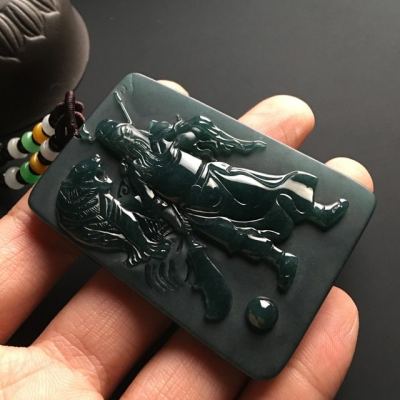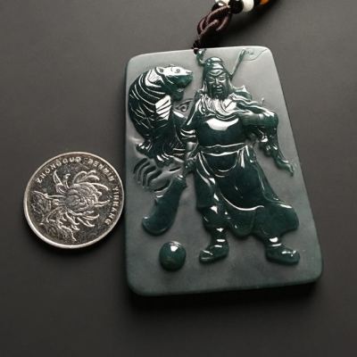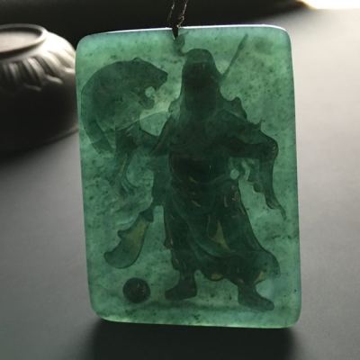 蓝水关公翡翠吊坠 尺寸64-47-7.2毫米