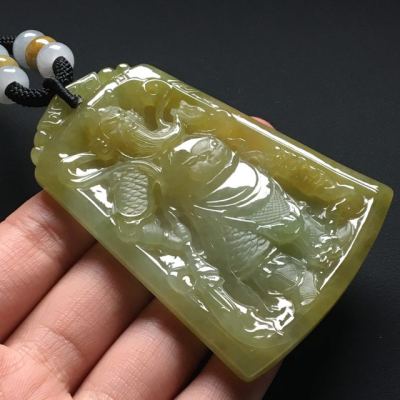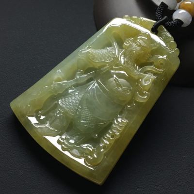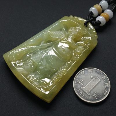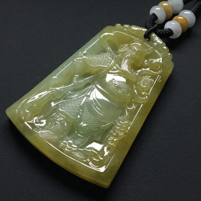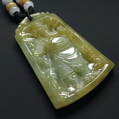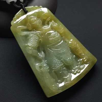 巧雕黄翡关公吊坠 尺寸:67-46-7毫米