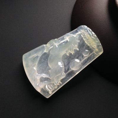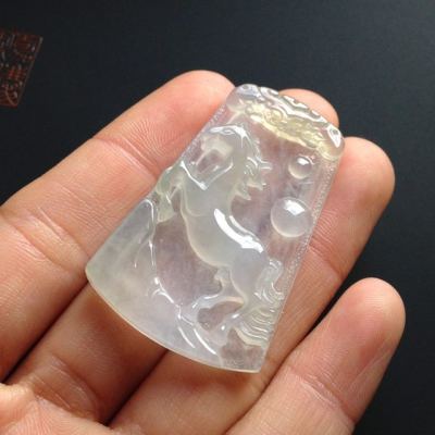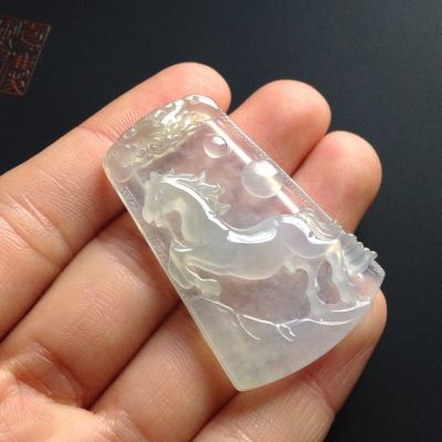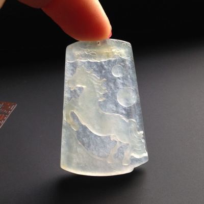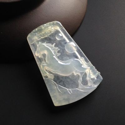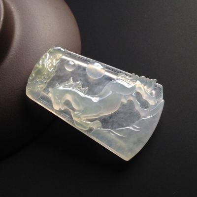 冰种荧光 马牌翡翠挂件 尺寸43-27-6毫米