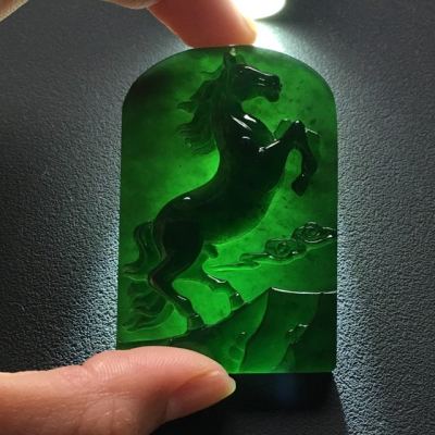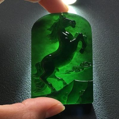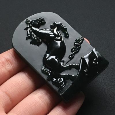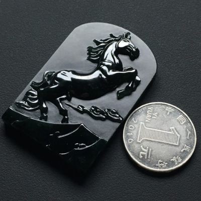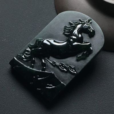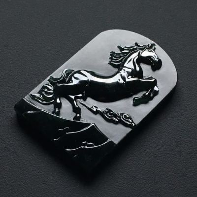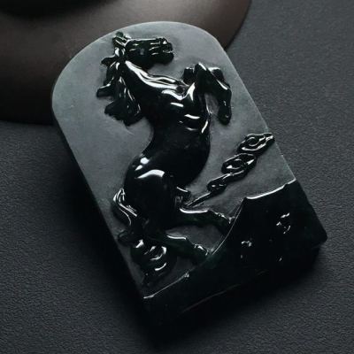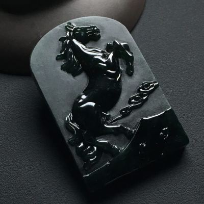 冰种墨翠 马到成功挂件 尺寸:53-34-7.3毫米