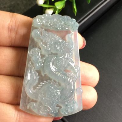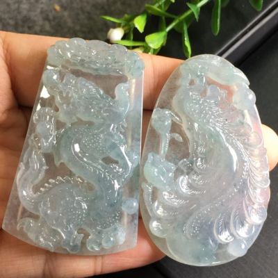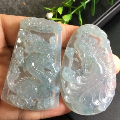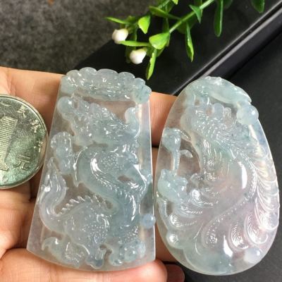 冰飘花龙凤牌 龙凤呈祥翡翠挂件 尺寸53.2*33.0*7.5*54.7*34.2*6.3mm
