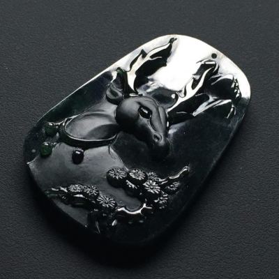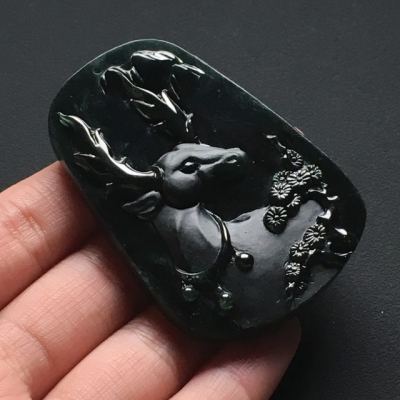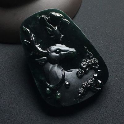 冰种墨翠福禄挂件 尺寸: 54-38-7.6毫米