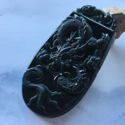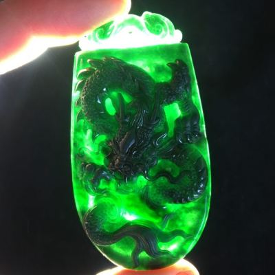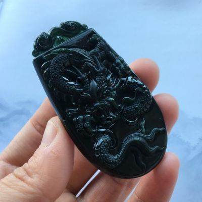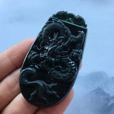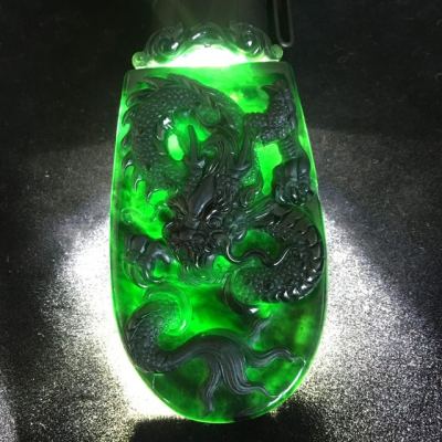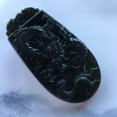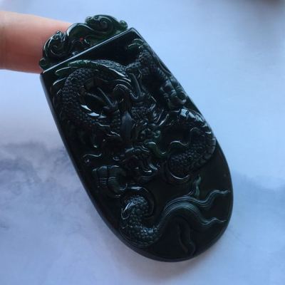 冰种墨翠龙牌吊坠 70.6*38*8.3