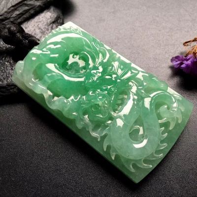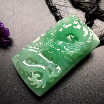 冰种带色 龙行天下翡翠吊坠 尺寸: 58-32-12mm