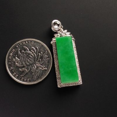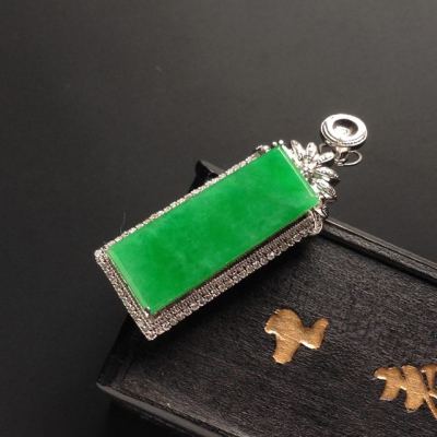 糯冰种阳绿无事牌翡翠挂件 尺寸24-9-2.5毫米 连金尺寸32-12-7毫米