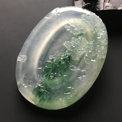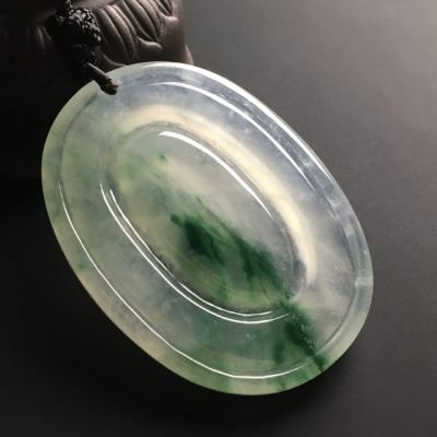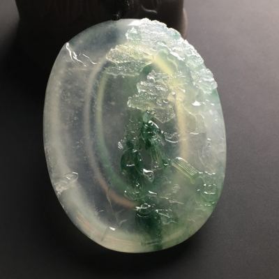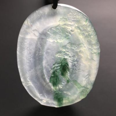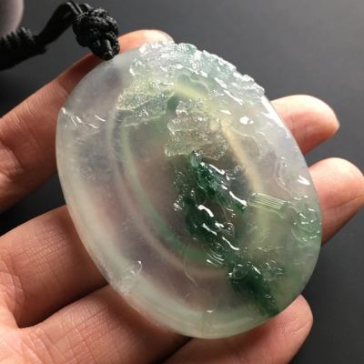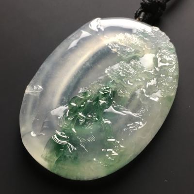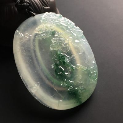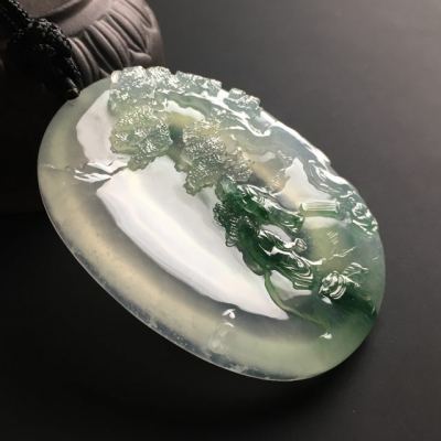 冰种飘花松下会友翡翠吊坠 尺寸64-48-8毫米
