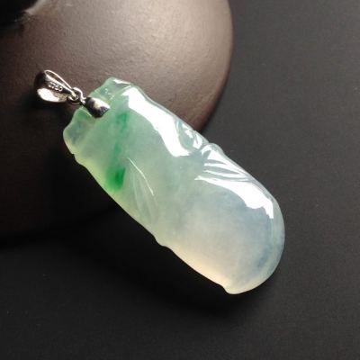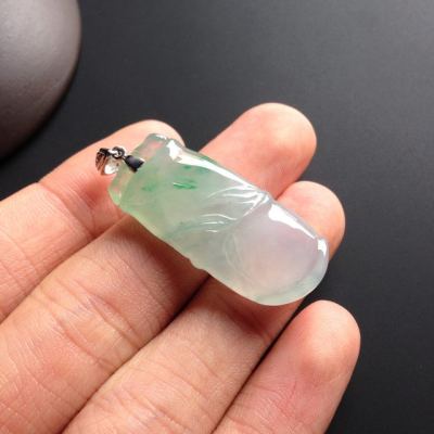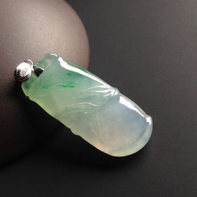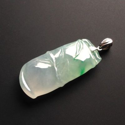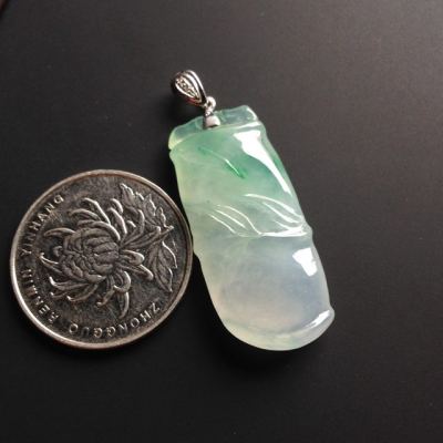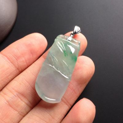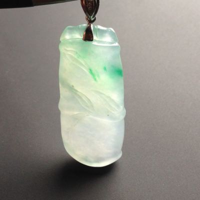 冰种带色 竹节翡翠挂件 尺寸34-15-6毫米