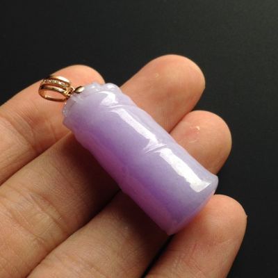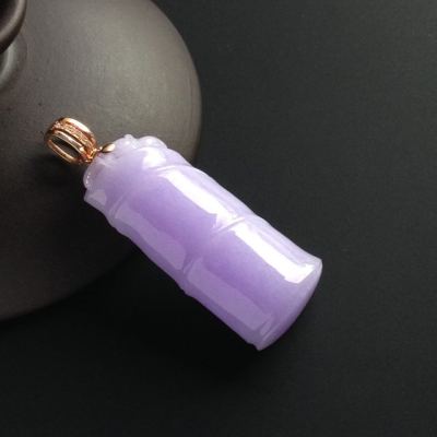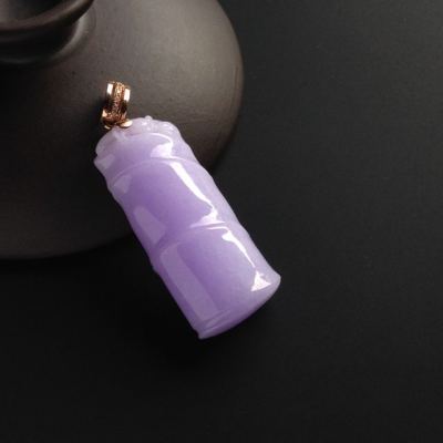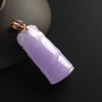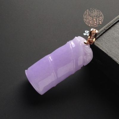 糯冰种紫罗兰 竹节挂件翡翠吊坠 尺寸35-15-10毫米