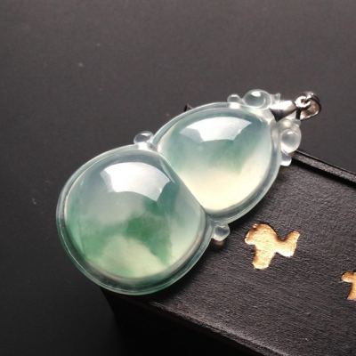 冰种飘花 福禄翡翠吊坠 18K白金扣 裸石39-21-7毫米