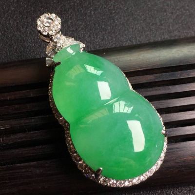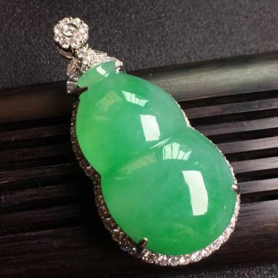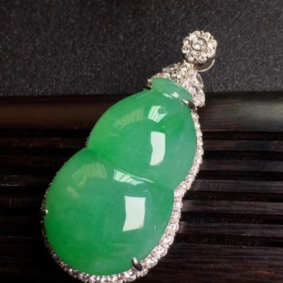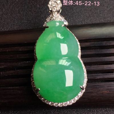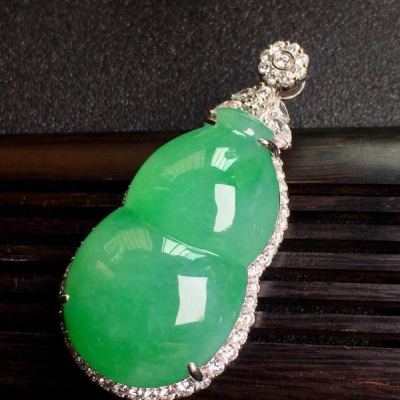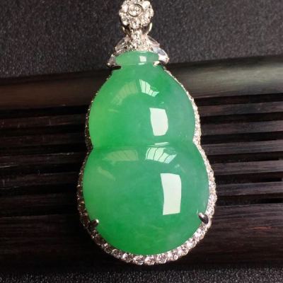 糯冰种阳绿 葫芦翡翠吊坠 尺寸:45*22*13 裸石尺寸:34*20