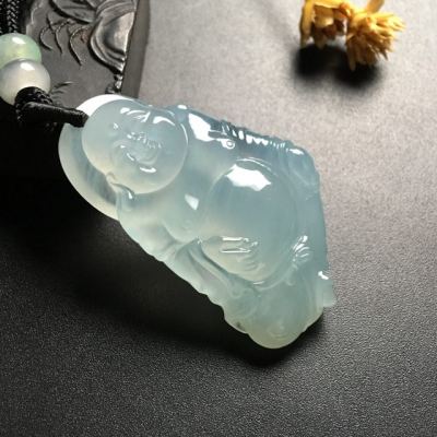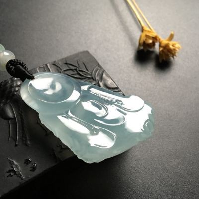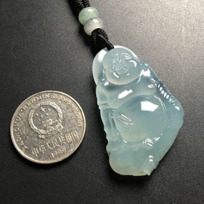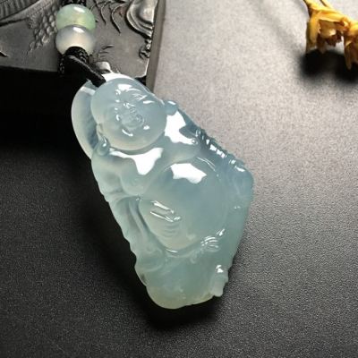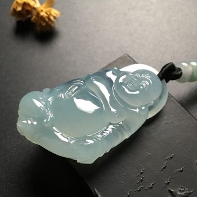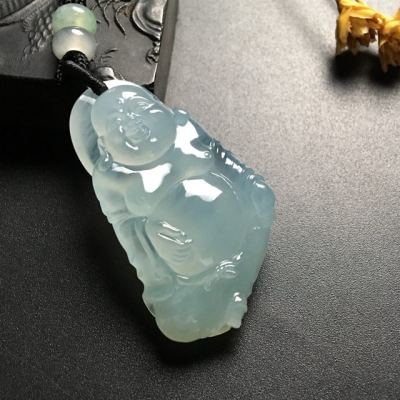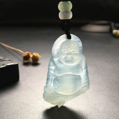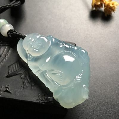 冰种蓝晴 佛翡翠吊坠 尺寸45-26-10毫米