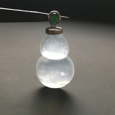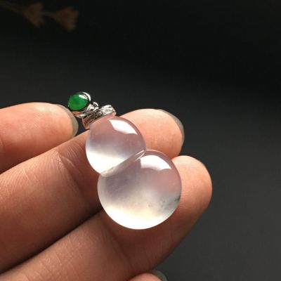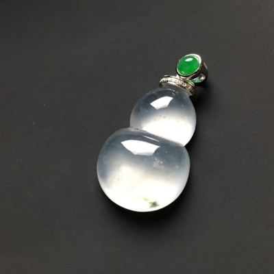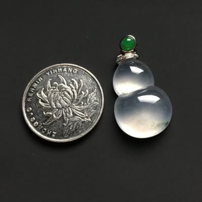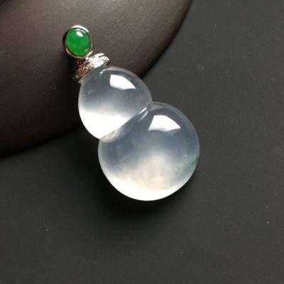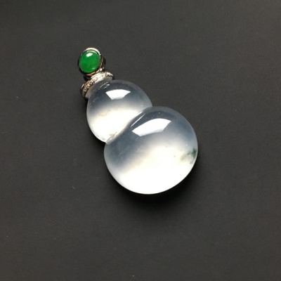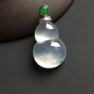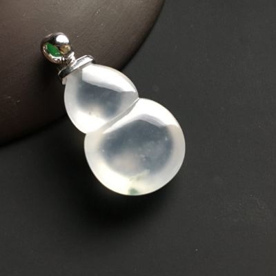 冰种飘花 葫芦翡翠吊坠 白金扣 尺寸25-17-7.5毫米