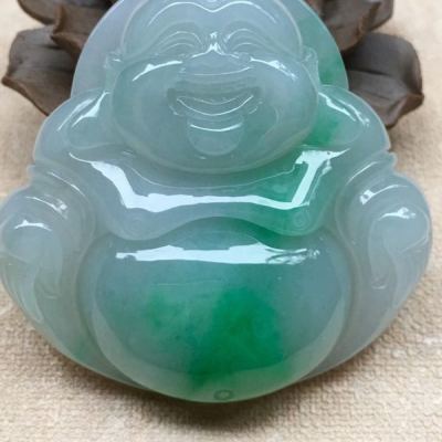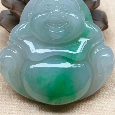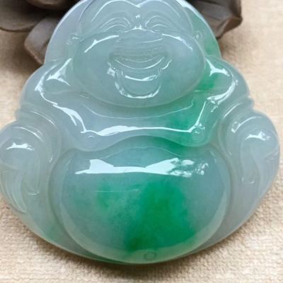 老坑料冰糯种飘阳绿 大坐佛翡翠吊坠